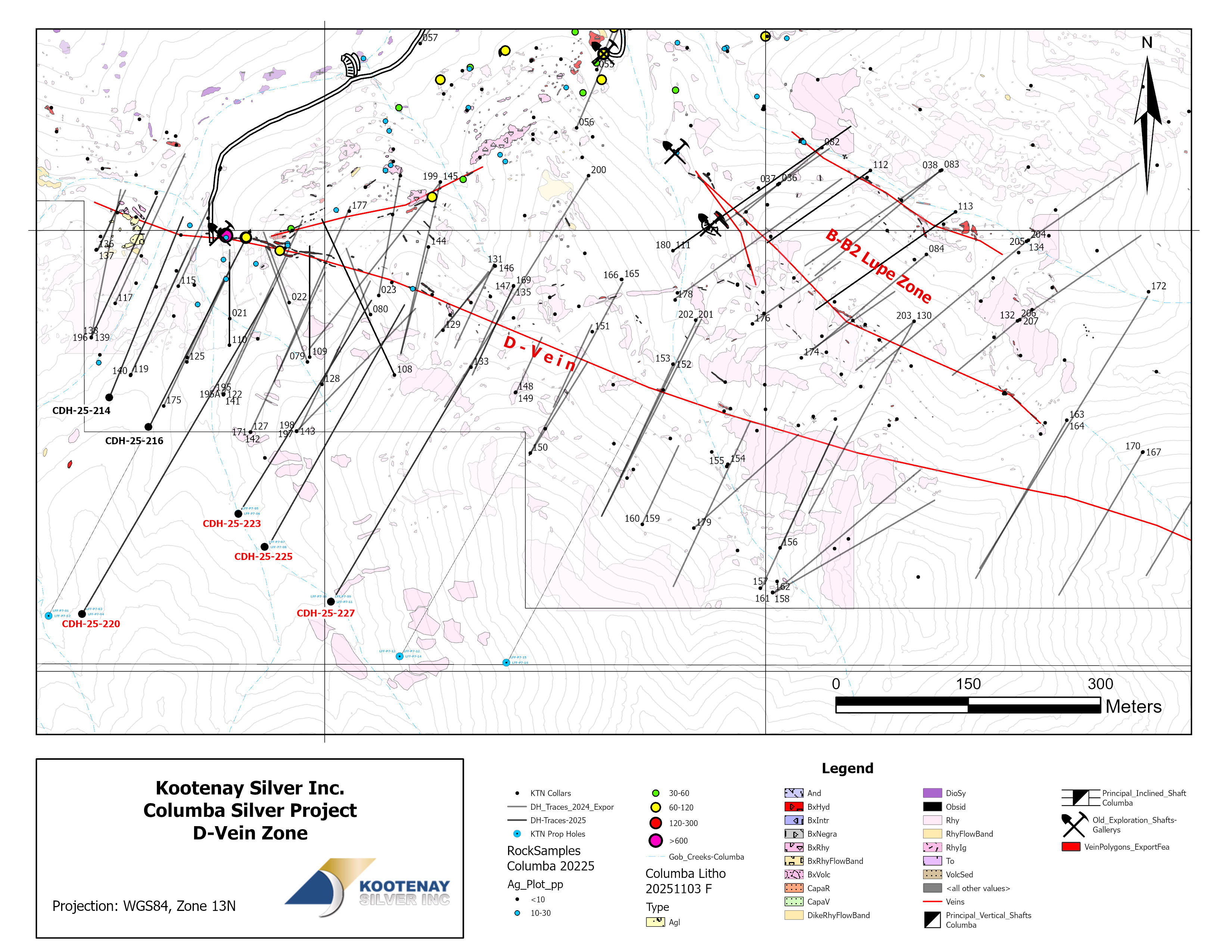 The current phase of work comprises a planned total 50,000 meter drilling program designed to follow up on mineralized veins comprising the Company’s recent 43-101 Mineral Resource Estimate (“MRE”). The maiden MRE is detailed in a report entitled “Technical Report on the Maiden Mineral Resource Estimate for the Columba Ag-Pb-Zn Project, Chihuahua State, Mexico” and dated August 1, 2025, MRE effective date, May 29, 2025 was filed on SEDAR+ at www.sedarplus.ca and is also available at the Company’s website at www.kootenaysilver.com. Kooteany Silver is fully funded through to the completion of the current 50,000 meter exploration drill campaign.